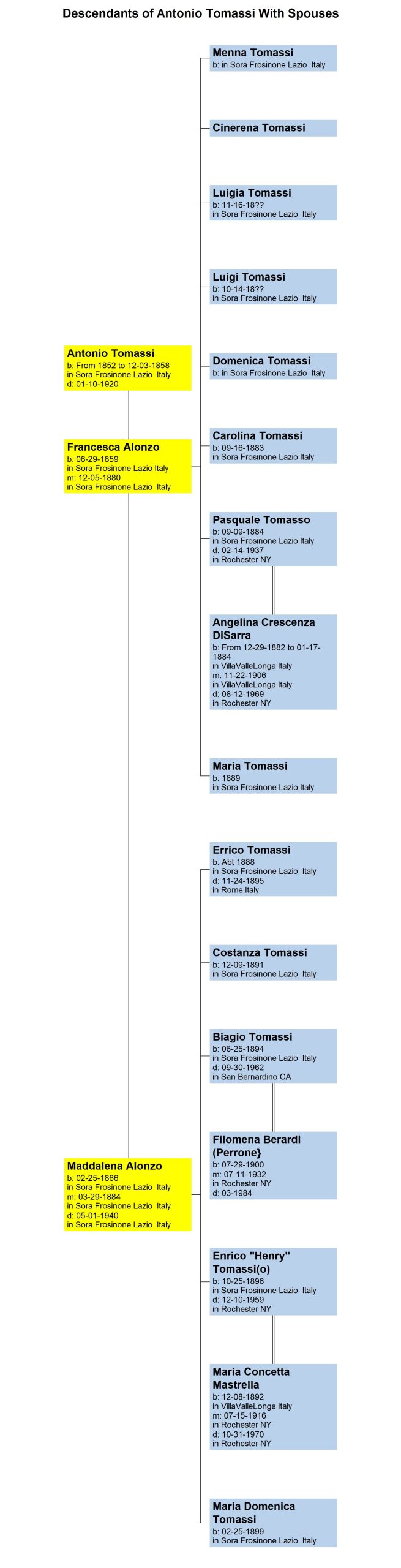 The first tree shows that Antonio married the Alonzo sisters–Francesca and Maddalena. The only date missing to this puzzle is Francesca’s date of death.